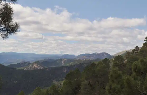 En la Sierra de Segura (Yeste, Albacete), ofrece senderismo de alta montaña. Los miradores hacia el valle del río Tus son impresionantes. El paisaje es agreste, con huertas en terraza y un relieve quebrado donde el agua y el pinar dominan el horizonte en una zona de gran aislamiento.