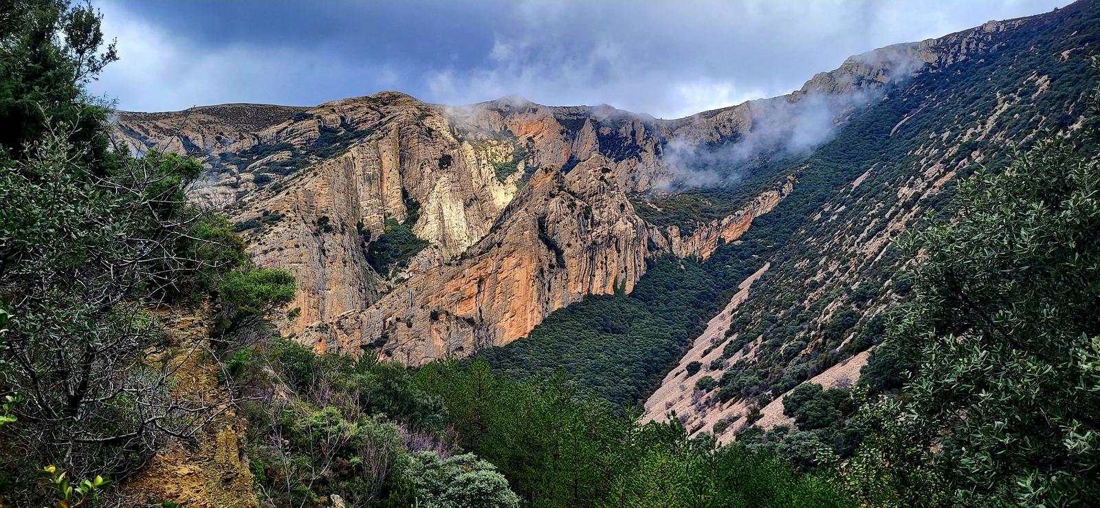 (Huesca) Puerta a la Sierra de Guara. Senderismo hacia los «Mallos de Ligüerri». Miradores sobre paredes de conglomerado verticales y el embalse de Vadiello. Paisaje de una potencia geológica extrema con relieve de erosión diferencial.